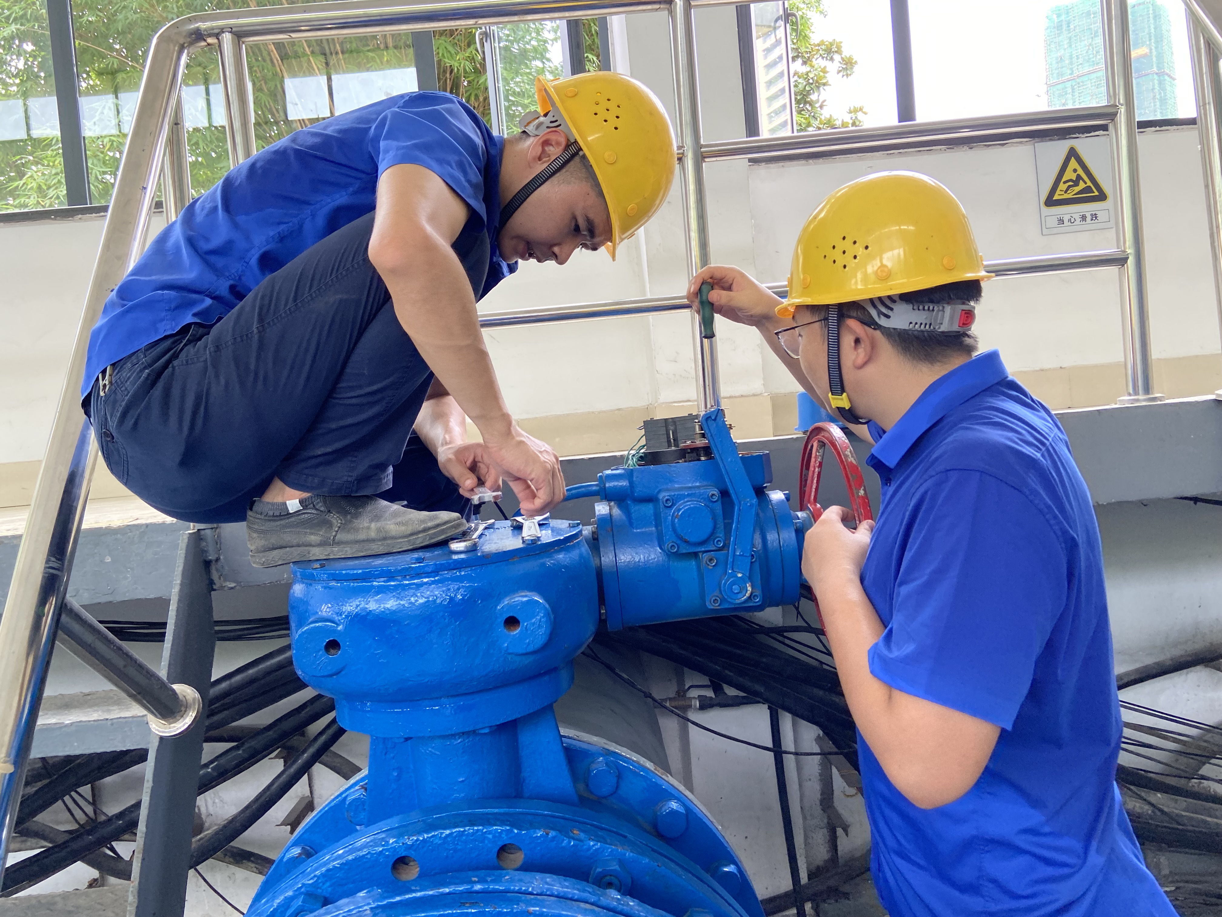 7月16日上午9:00,巡視人員發(fā)現(xiàn)中壓泵房1#機(jī)組閥門無法正常開啟,經(jīng)檢查,發(fā)現(xiàn)閥門控制系統(tǒng)故障,行程過力矩,導(dǎo)致執(zhí)行器外殼破裂,固定軸承損壞。相關(guān)人員立即上報(bào)站長(zhǎng)。了解情況后,站長(zhǎng)當(dāng)機(jī)立斷,立即部署安排搶修工作。維修人員全員出動(dòng),與時(shí)間賽跑,焊接執(zhí)行器外殼、更換軸承及閥門、較準(zhǔn)行程,在40℃高溫下歷時(shí)近十小時(shí),工作服反復(fù)濕透多遍,終于趕在當(dāng)晚19:00完成了任務(wù),最大程度減少了對(duì)用戶生活帶來的不便。