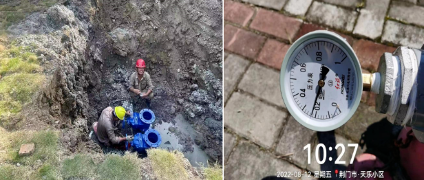 迎春大道臨時(shí)加壓設(shè)施3天半完工,天樂(lè)小區(qū)水壓從0.08MPa恢復(fù)到0.23MPa。