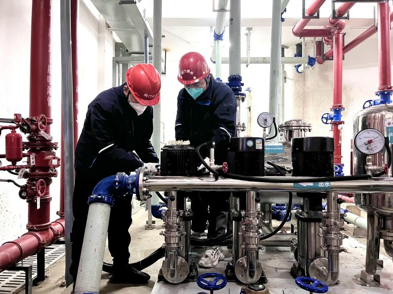 水務(wù)集團(tuán)二次設(shè)施運(yùn)維班在去年通過(guò)加裝排氣閥,解決了供水主管網(wǎng)停水或壓力波動(dòng)較大時(shí),進(jìn)水罐處空氣泵機(jī)運(yùn)行異常問(wèn)題。隨后馬不停蹄,以練代戰(zhàn),利用空余時(shí)間學(xué)習(xí)二次加壓設(shè)備電機(jī)運(yùn)行原理,并多次演練電機(jī)進(jìn)水后的快速搶修,工作效率得到大幅提升。