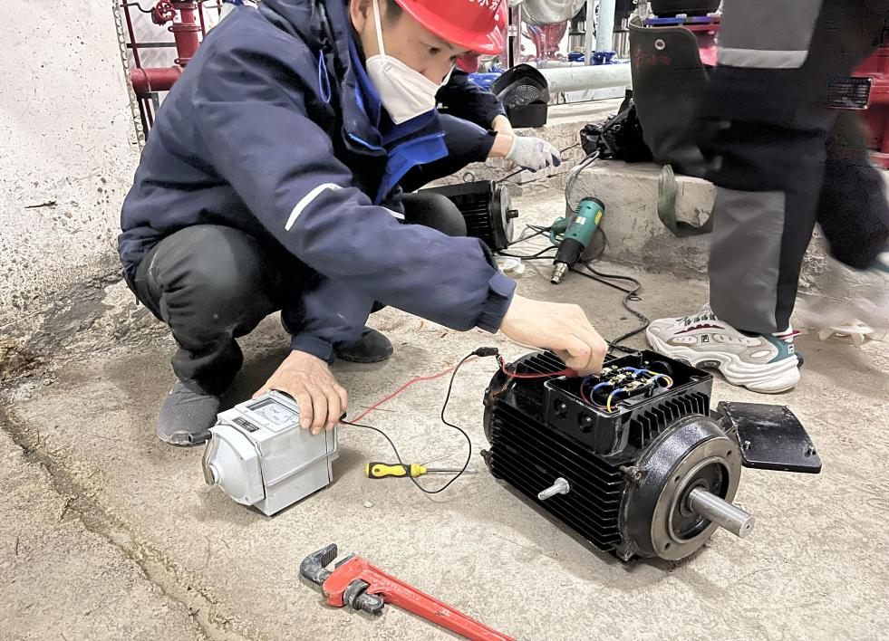 新年伊始,集團(tuán)營(yíng)抄中心接到電話求助,反映京奧·城市奧特萊斯廣場(chǎng)無(wú)水。維修人員立即響應(yīng),僅用6分鐘便趕赴現(xiàn)場(chǎng)。經(jīng)初步排查,發(fā)現(xiàn)因泵房電機(jī)進(jìn)水,自控系統(tǒng)失效、泵機(jī)不運(yùn)作,導(dǎo)致無(wú)法供水。演練多日,用在一時(shí)。維修班長(zhǎng)快速分工,班員們各司其職,迅速投入“戰(zhàn)斗”。一人操作控制系統(tǒng),兩人現(xiàn)場(chǎng)快速拆機(jī),更換進(jìn)水軸承,烘干定子線圈和轉(zhuǎn)子,對(duì)線圈進(jìn)行絕緣處理,整個(gè)過(guò)程一氣呵成,有條不紊。三人同步作業(yè),最終僅耗時(shí)4個(gè)多小時(shí),完成6臺(tái)電機(jī)搶修,恢復(fù)了供水。24小時(shí)后,維修人員再探現(xiàn)場(chǎng),復(fù)查數(shù)據(jù)參數(shù)和供水壓力,加固所有連接件,確保萬(wàn)無(wú)一失。