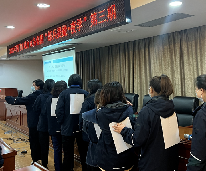 3月9日晚,水務(wù)集團第三期“練兵提能·夜學”如期而至。收費中心圍繞“理論結(jié)合實際,助推職業(yè)規(guī)范化”主題,為大家講述服務(wù)禮儀和心理健康等知識。內(nèi)容切合實際,深受員工歡迎。
