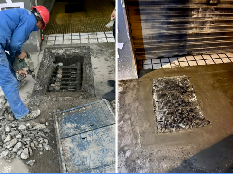 李先生是小區(qū)業(yè)主,見(jiàn)洗車(chē)店里每天進(jìn)出車(chē)輛較多,導(dǎo)致門(mén)口的地埋式水表箱產(chǎn)生形變,且有積水,存在一定的安全隱患。3月4日上午,在接到李先生的求助后,水務(wù)集團(tuán)第一時(shí)間派專(zhuān)人上門(mén)勘察,發(fā)現(xiàn)門(mén)面附近有天然氣管道標(biāo)識(shí)地磚,但沒(méi)有管道走向標(biāo)識(shí)地牌,貿(mào)然操作可能引發(fā)安全事故。經(jīng)溝通,工作人員擬將原水表箱更換為鑄鐵式水表箱,并幫其清除積水。為保障洗車(chē)店正常經(jīng)營(yíng),集團(tuán)于5號(hào)晚上完成施工整改。李先生感慨集團(tuán)反映迅速、整改及時(shí)、技術(shù)過(guò)硬。