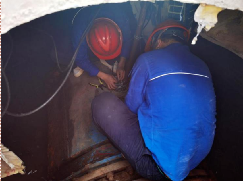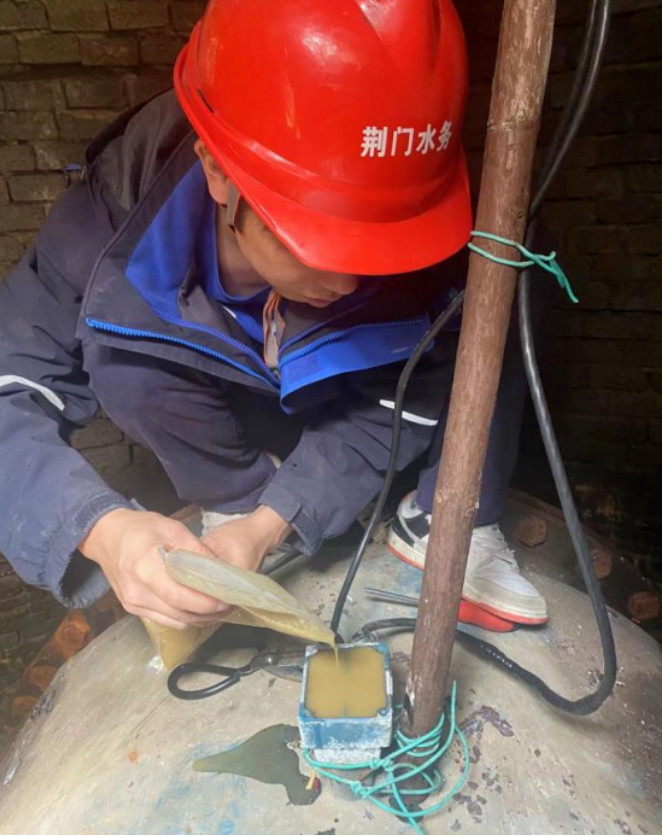 廠領(lǐng)導在綜合評估后,同意其思路,并作安全操作提醒。雖早有心理準備,但在打開接線盒后的瞬間,李為龍等人還是倒吸一口涼氣。他們發(fā)現(xiàn)整個接線盒內(nèi)部被深色不透明的膠體充滿,無法掌握線路走向。短暫思索后,他們發(fā)揮水務(wù)人不怕苦、能戰(zhàn)斗的精神,嘗試按廠家給出建議,用熱風槍加熱密封膠,但事與愿違,效果并不理想,密封膠沒有自動融化流出。李為龍“改巧為笨”,在加熱的同時用小刀清理變軟的膠體。該處操作空間狹小,且不能損壞內(nèi)部的線路和接線端子,必須凝神聚力,是個“精細活”“體力活”。即便同事們輪番上陣,依然個個汗如雨下。功夫不負有心人,眾人合力熬過“漫長的”4小時,最終完成了既定任務(wù)。