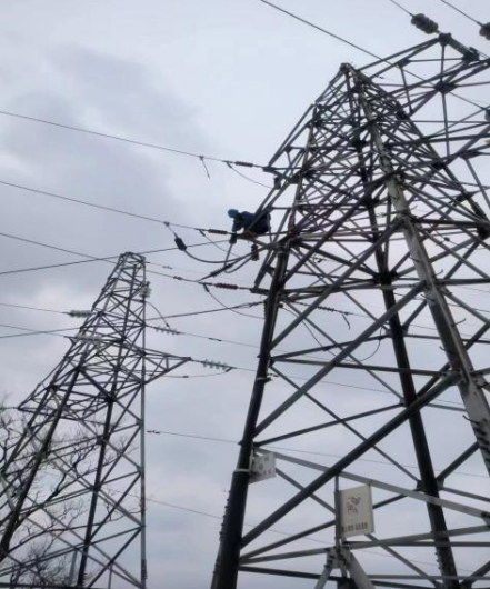 圖為搶修人員登桿作業(yè)