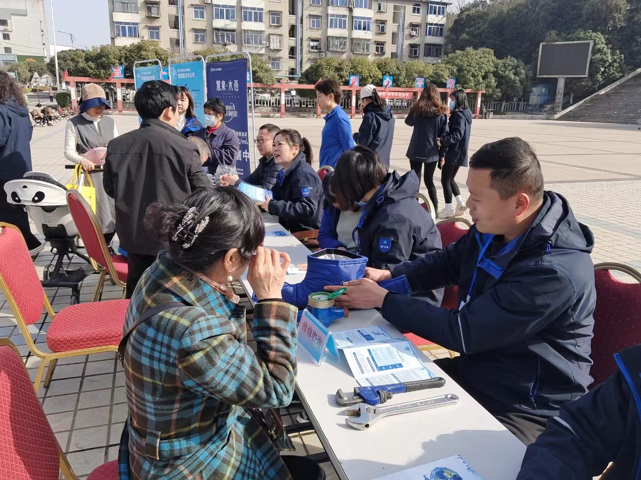 3月20 日上午,市水務(wù)集團(tuán)20名水務(wù)藍(lán)化身“店小二”,以“居民用水、防凍保暖常識”為活動主題,將供水服務(wù)送進(jìn)東寶區(qū)葛洲壩社區(qū)。