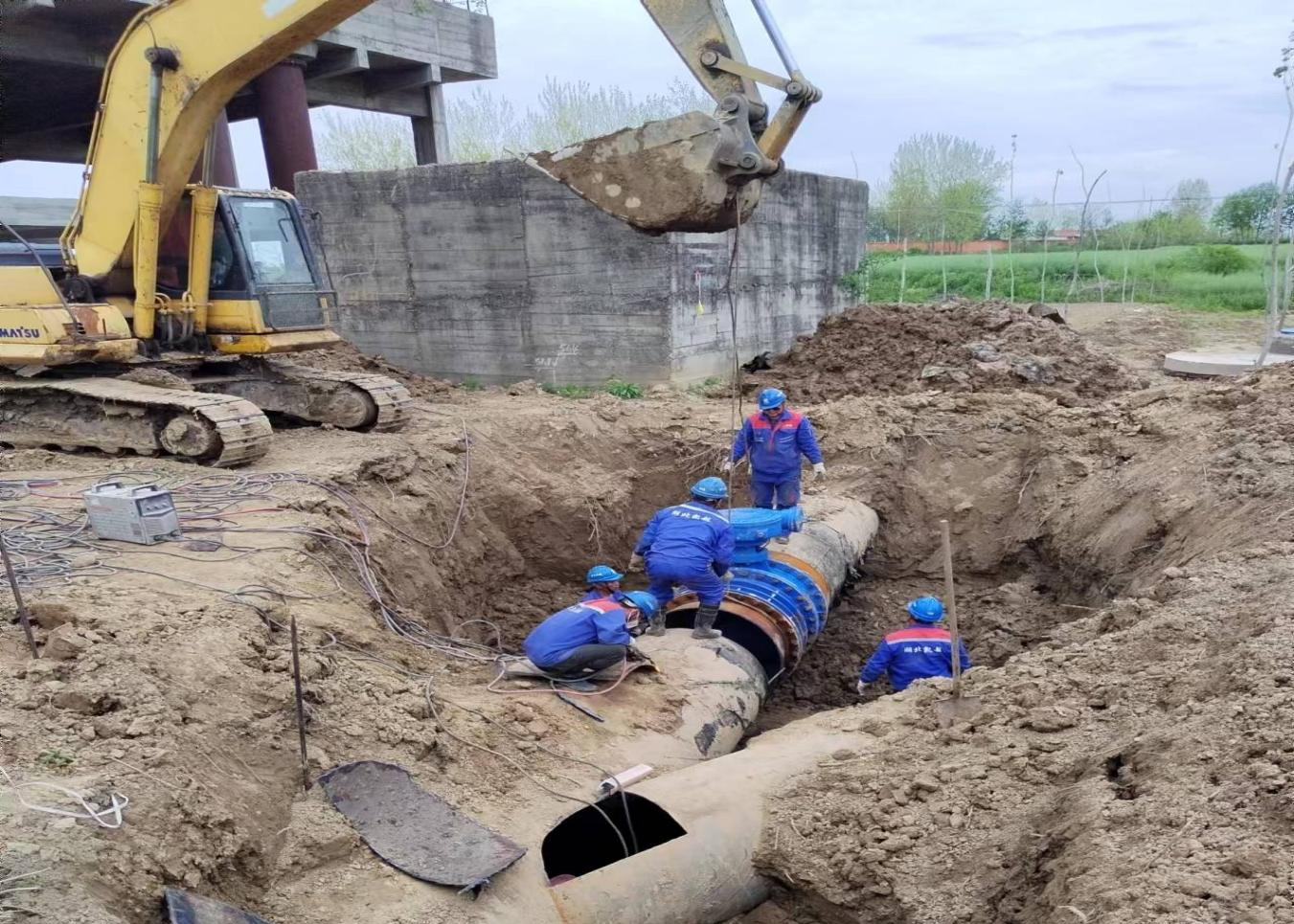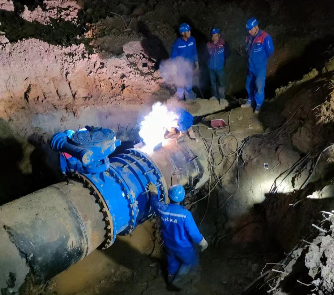 4月9日7時(shí)至次日凌晨4時(shí),40余名工作人員陸續(xù)就位,充分調(diào)配備用原水,關(guān)閉總閘、排水、抽水、切割、焊接,施工過(guò)程一氣呵成。