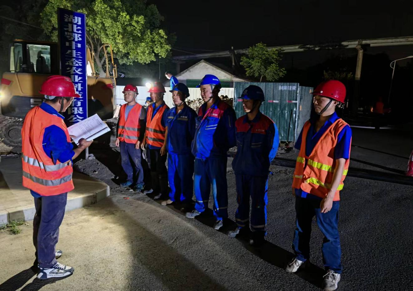6月24日,工程主體管線(xiàn)鋪設(shè)完成,進(jìn)入最后連接階段。為了最大限度降低對(duì)用戶(hù)生活帶來(lái)的不便,荊襄公司組建專(zhuān)班,選擇夜間施工,統(tǒng)籌組織牽引、挖掘等大型機(jī)械設(shè)備進(jìn)場(chǎng),完成施工標(biāo)識(shí)設(shè)立、圍擋封閉、作業(yè)面清理等前期準(zhǔn)備工作。