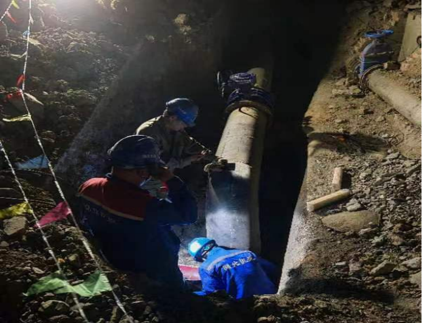 24日晚22時(shí)開(kāi)始停水施工,工作人員在作業(yè)坑內(nèi)各司其職,排水、切割、加裝管夾、安裝三通、加裝閥門(mén)……工作現(xiàn)場(chǎng)緊鑼密鼓,人機(jī)作業(yè)井井有條,經(jīng)過(guò)5小時(shí)連續(xù)施工,圓滿(mǎn)完成碰頭施工,比原計(jì)劃提前3小時(shí)通水。