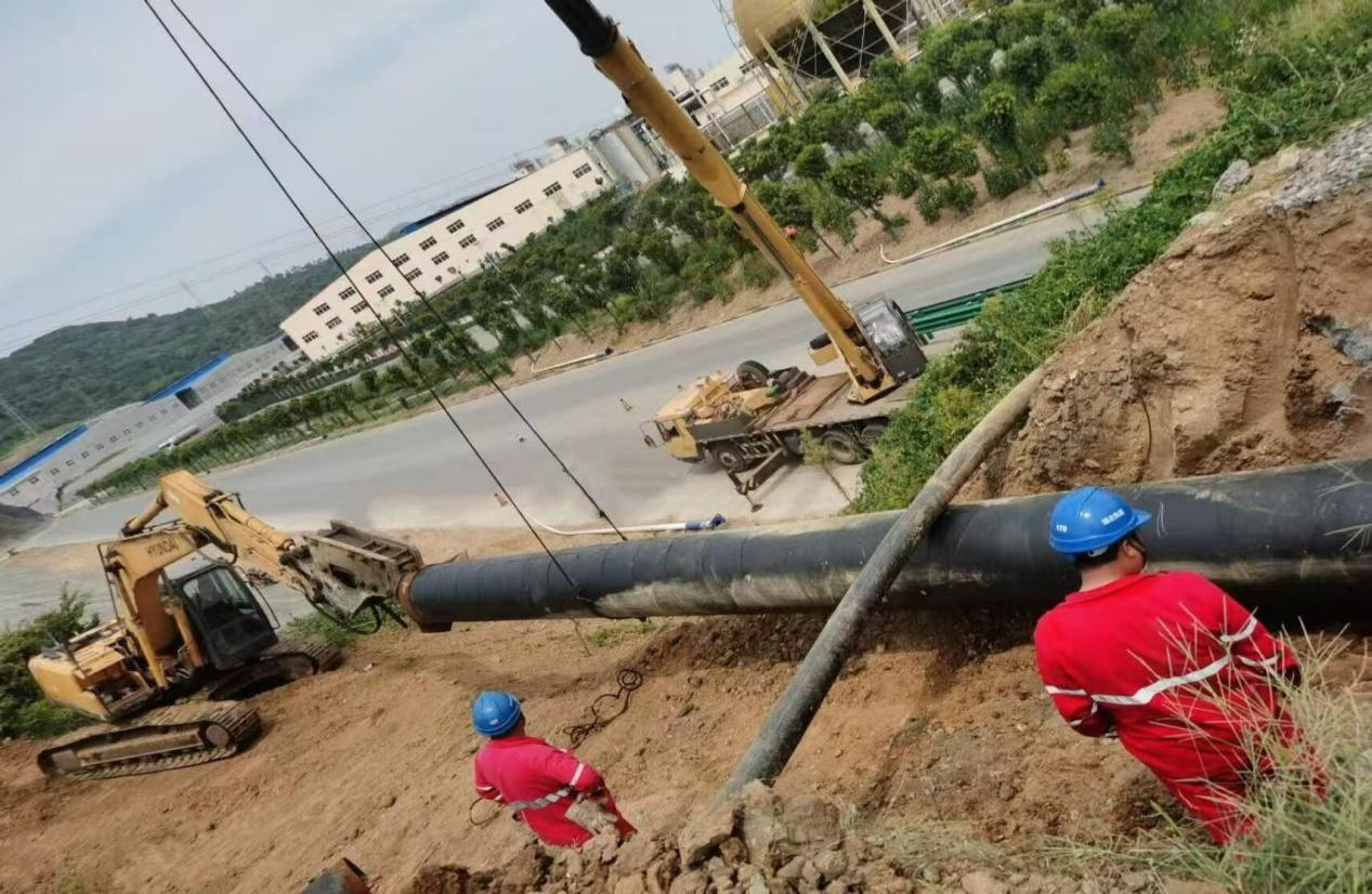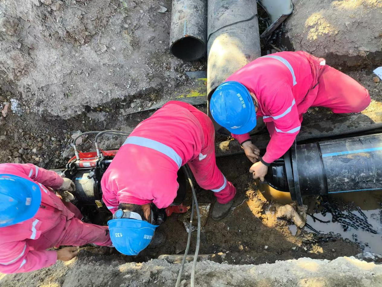 圖為管道碰頭施工現(xiàn)場