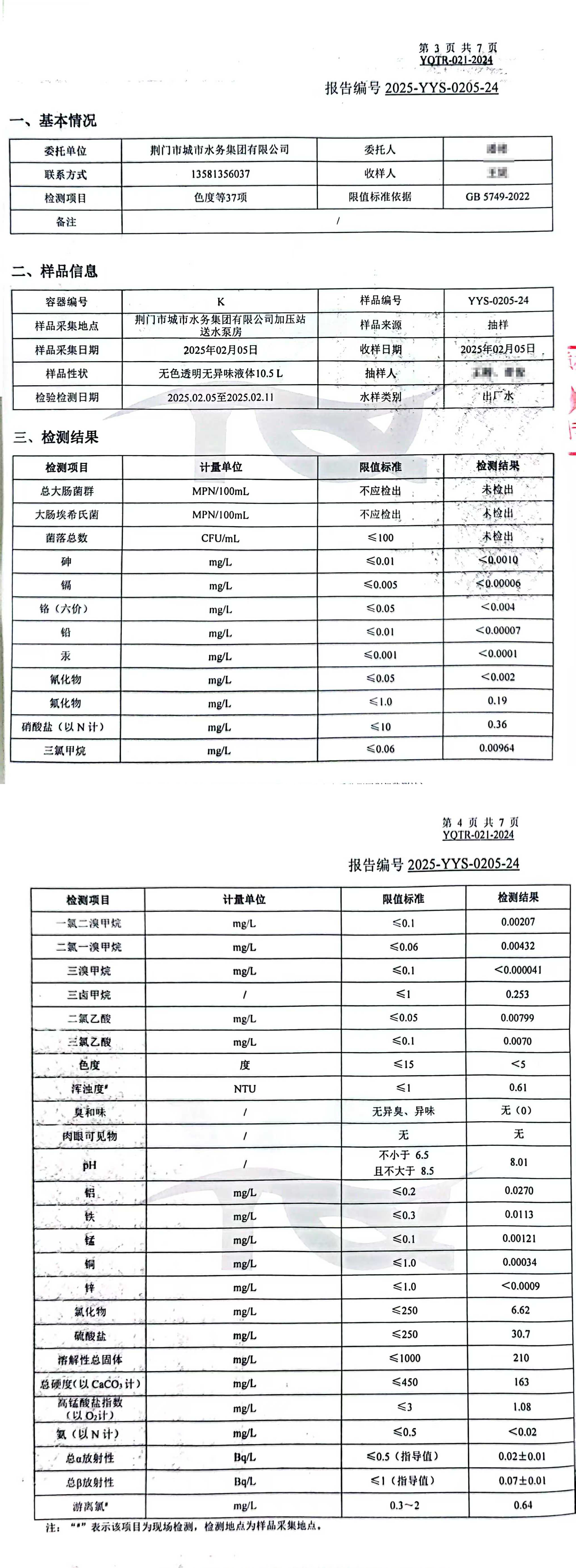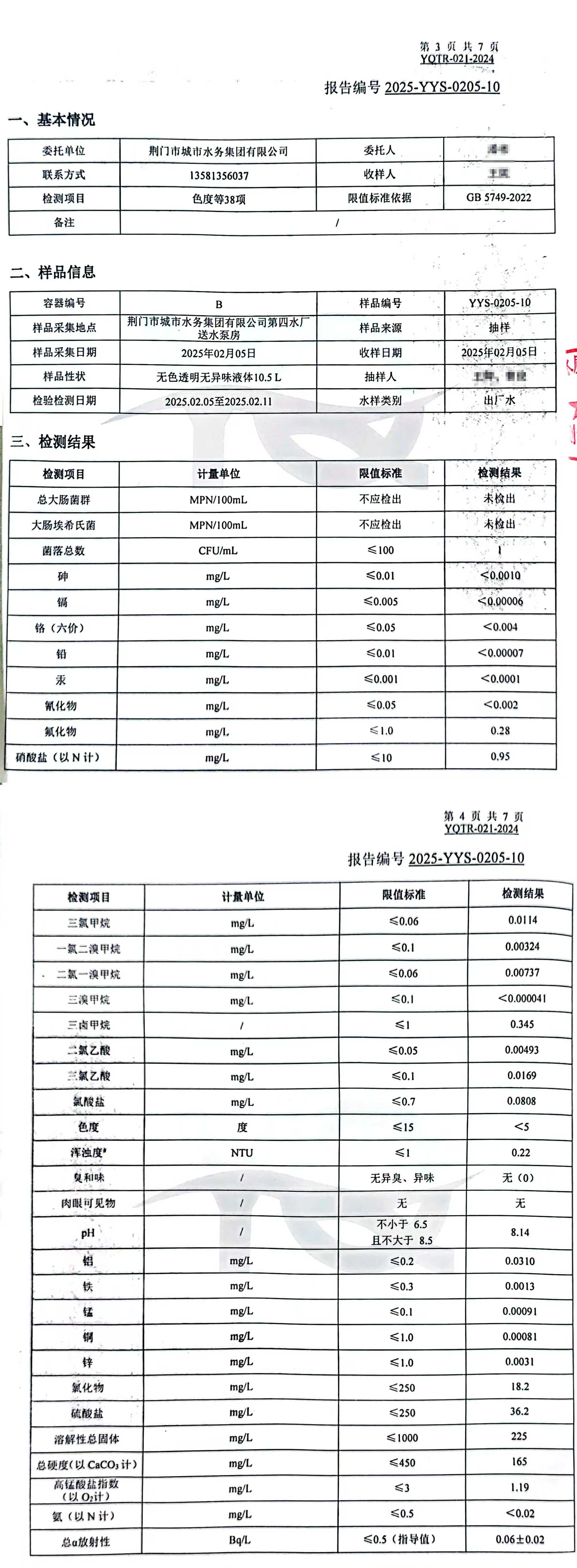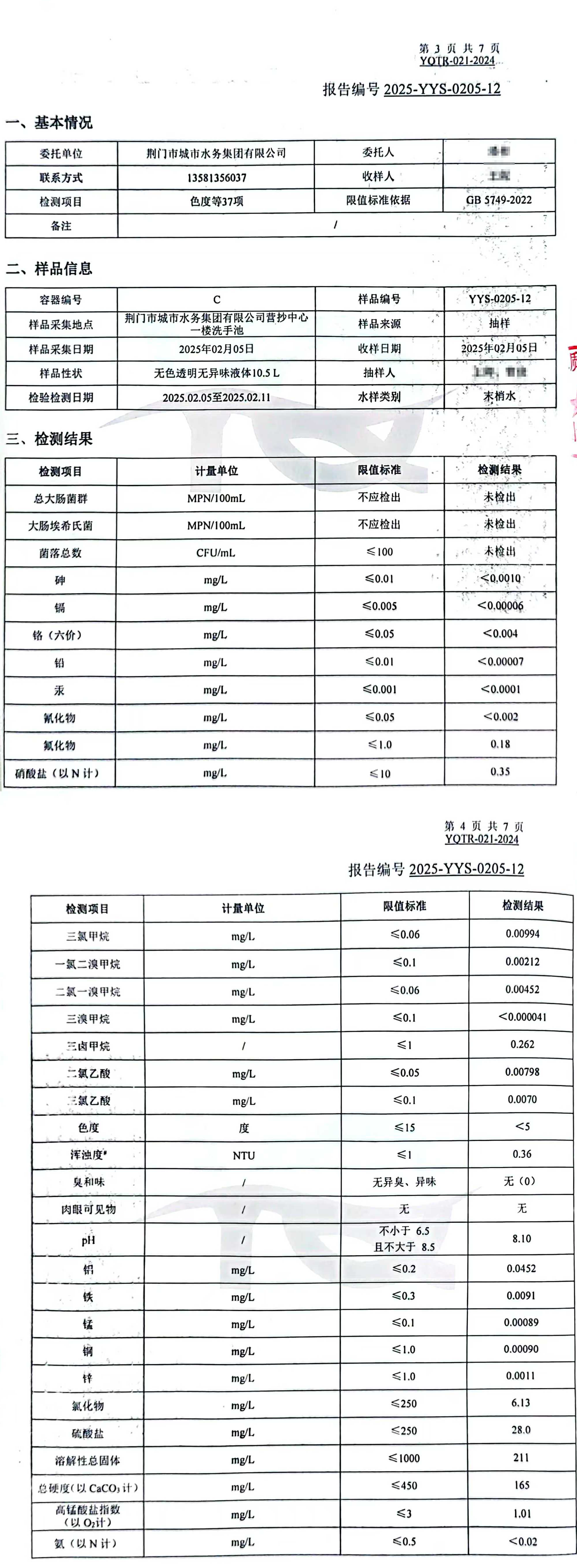 2025年2月水質(zhì)檢測(cè)結(jié)果公布