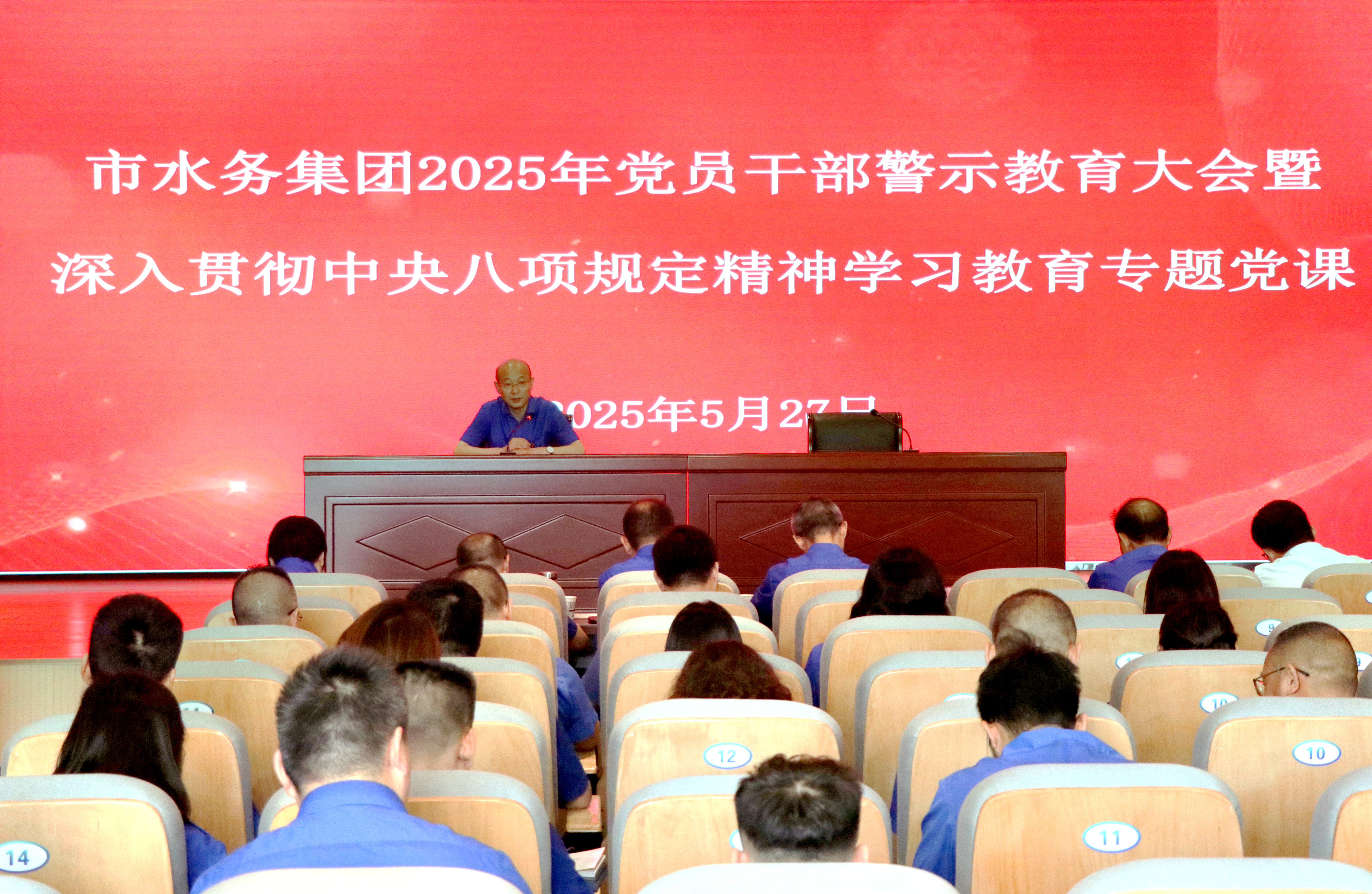 按照省、市關(guān)于深化中央八項(xiàng)規(guī)定精神學(xué)習(xí)教育相關(guān)要求,5月27日上午,市水務(wù)集團(tuán)召開黨員干部警示教育大會(huì)暨深入貫徹中央八項(xiàng)規(guī)定精神學(xué)習(xí)教育專題黨課。會(huì)議組織觀看警示教育片,集團(tuán)黨委書記、董事長(zhǎng)陳永根講授專題黨課,集團(tuán)黨委委員、紀(jì)委書記劉高軼主持會(huì)議。集團(tuán)全體高層領(lǐng)導(dǎo)、中層干部及機(jī)關(guān)黨員參加會(huì)議。
