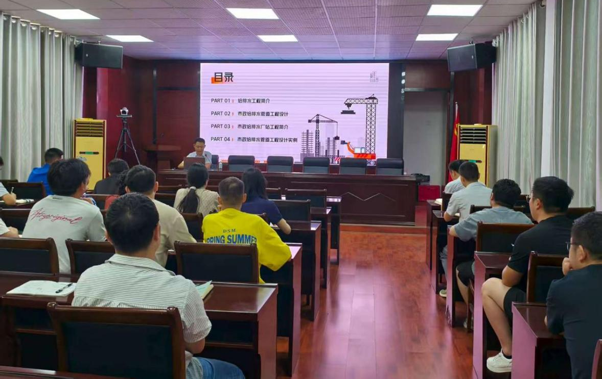 本次培訓特邀湖南省市政行業(yè)專家華磊主講。專家圍繞給排水工程概述、市政給排水管道工程設計要點、市政給排水廠站工程概況及設計實例等內容,深入解析市政給排水管道設計思路,并結合實際案例,對水勘院設計人員在項目實施中遇到的疑難問題逐一解答。參訓人員紛紛表示深受啟發(fā),將把所學知識應用到實際工作中,補齊專業(yè)短板。