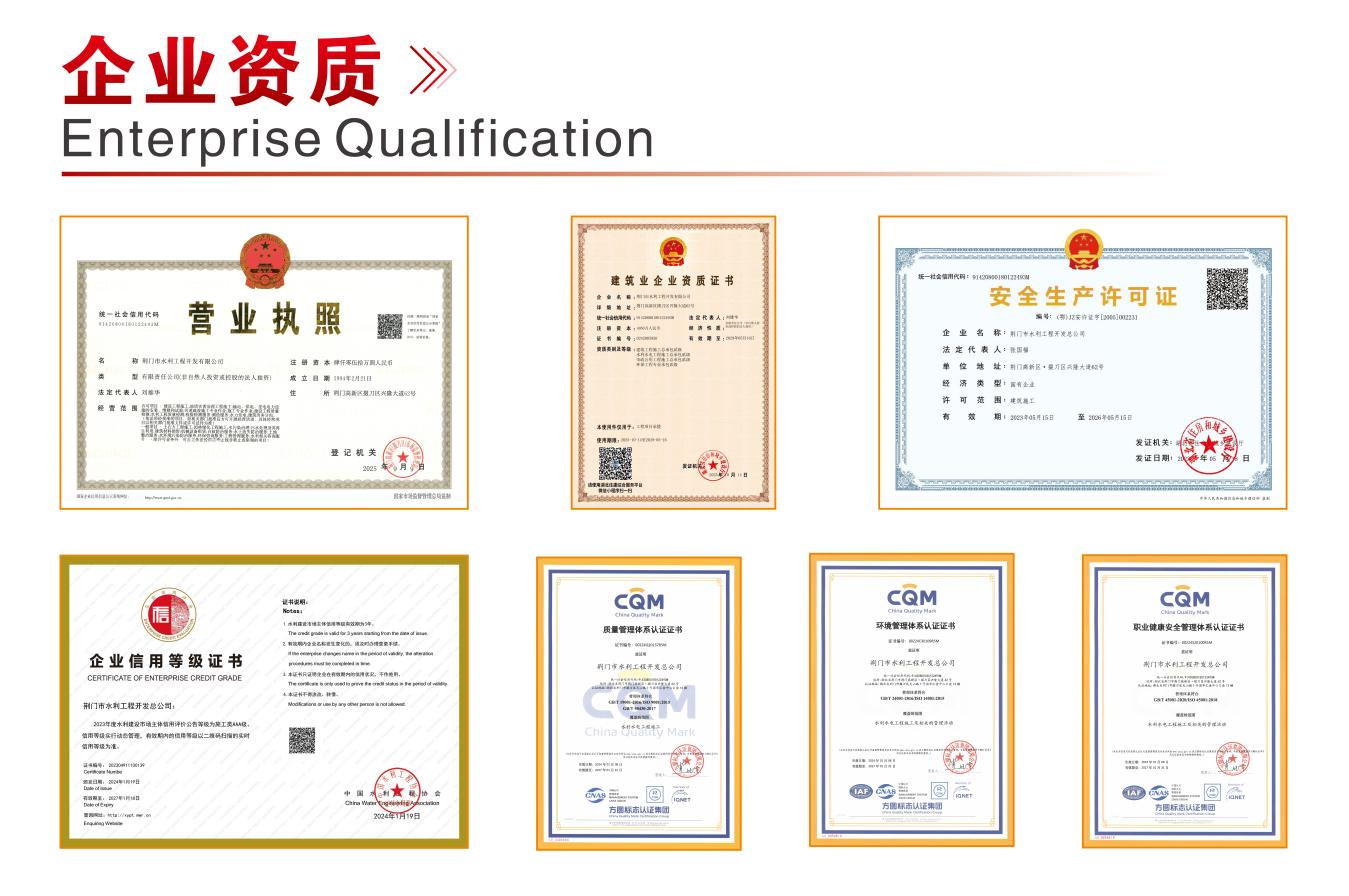 企業(yè)資質(zhì)與榮譽(yù)是企業(yè)綜合實力的“通行證”。水利公司具有水利水電、建筑工程、市政公用工程三項施工總承包貳級資質(zhì)和環(huán)保工程專業(yè)承包貳級資質(zhì),2024年12月成功通過高新技術(shù)企業(yè)認(rèn)定。主要從事水利水電工程、建筑工程、市政公用工程、環(huán)保工程、工程質(zhì)量檢驗檢測服務(wù)等,綜合實力躋身省內(nèi)水利施工行業(yè)第一方陣。