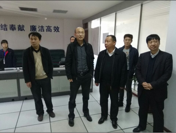 4月14日,省文明辦主任胡和平(前排右二)在市委常委、市委秘書(shū)長(zhǎng)周友坤(右一)、市委宣傳部副部長(zhǎng)、文明辦主任樊雁陪同下到公司指導(dǎo)創(chuàng)建全國(guó)文明單位工作,市供水總公司黨委書(shū)記、總經(jīng)理陳永根介紹相關(guān)情況。圖為在調(diào)度監(jiān)控中心視察時(shí)的情景。