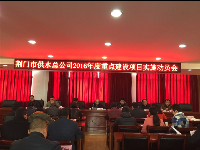 黨委書記、總經(jīng)理陳永根作會議動員,陳總分析了當(dāng)前發(fā)展形勢,指出2016年公司面臨重大發(fā)展機(jī)遇和挑戰(zhàn)。隨著中央城市工作會議以及市委七屆八次全體會議的召開,城市建設(shè)迎來歷史性發(fā)展機(jī)遇,荊門江漢平原中心城市的定位,十三五期間荊門城市建設(shè)資金達(dá)2200億元,三年滾動資金就達(dá)800億,2016年公司政府投資項(xiàng)目資金達(dá)1億,要搶抓機(jī)遇 、迎難而上,攻堅克難、鍛煉隊(duì)伍、優(yōu)化結(jié)構(gòu),開辟新的經(jīng)濟(jì)增長點(diǎn);要強(qiáng)化措施,成立四水廠、中心城區(qū)供水設(shè)施、象山大道改造、三條高速出入口改造及中心城區(qū)消防栓建設(shè)、掇刀區(qū)供水管網(wǎng)建設(shè)、東寶區(qū)供水管網(wǎng)建設(shè)、漳河新區(qū)供水管網(wǎng)建設(shè)、響嶺加壓站和二水廠備用電源等七個項(xiàng)目建設(shè)專班,分別由一名副總經(jīng)理擔(dān)任責(zé)任領(lǐng)導(dǎo),對應(yīng)一個責(zé)任處室、單位,明確職責(zé)、層層抓好落實(shí);要抓好項(xiàng)目前期工作,確保項(xiàng)目落地生根,確保按時保質(zhì)完成;相互溝通協(xié)調(diào)協(xié)作、形成合力,確保本職工作、項(xiàng)目建設(shè)兩不誤兩促進(jìn);要強(qiáng)化執(zhí)紀(jì)問責(zé),由公司紀(jì)委負(fù)責(zé),加強(qiáng)對重點(diǎn)工作、項(xiàng)目落實(shí)情況進(jìn)行督辦問責(zé)、推動落實(shí),按照任務(wù)分工、時間節(jié)點(diǎn)督辦,強(qiáng)化擔(dān)當(dāng)、強(qiáng)化執(zhí)行力,加快進(jìn)程,對落實(shí)不力的、遲滯延誤的要根據(jù)《中國共產(chǎn)黨紀(jì)律處分條例》相關(guān)條款進(jìn)行處理;要創(chuàng)新開展工作,主動與主管部門對接、協(xié)調(diào),提前謀劃、積極跑事、干事、時不我待、只爭朝夕;要增強(qiáng)項(xiàng)目廉潔自律意識,按規(guī)矩辦事、不踩紅線,確保項(xiàng)目立得起、干部挺得住,能干事、干成事、不出事。會議動員全體干部職工鼓足干勁、通力協(xié)作,迅速掀起項(xiàng)目建設(shè)、會戰(zhàn)熱潮。