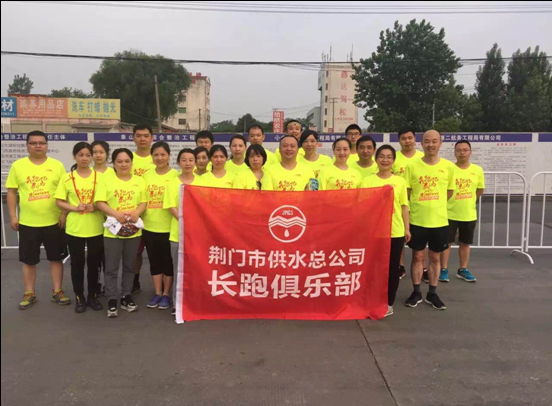 52上午,荊門市供水總公司長跑俱樂部24名職工組成的長跑團隊在“愛飛客”2016荊門國際馬拉松賽場一展風采。