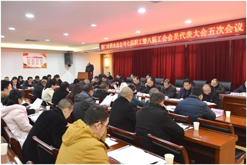 1月2日下午,市供水總公司七屆職工暨八屆工會會員代表大會五次會議勝利召開。大會聽取并審議了2017年度公司工作報告、2017年度工會委員會工作報告、2017年度財務預算執(zhí)行和2018年財務預算草案編制報告、2017年度工會經(jīng)費執(zhí)行和2018年工會經(jīng)費預算情況報告、七屆職工暨八屆工會會員代表大會三次會議職工代表提案辦理情況報告及本次會議征集職工代表提案報告。公司黨委成員和職工代表、工會會員代表、列席代表共100余人參加會議。