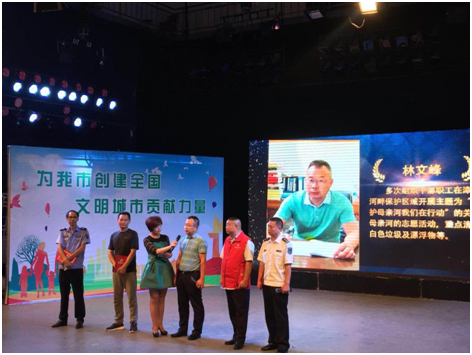 漳河是荊門人民的母親河。從事供水事業(yè)近30年以來,無論酷暑嚴(yán)寒、刮風(fēng)下雨,林文峰堅持每天巡查水源保護(hù)區(qū),帶領(lǐng)水廠員工清理取水口周邊雜物,確保水源干凈整潔和供水安全優(yōu)質(zhì)。頒獎典禮上,林文峰現(xiàn)場講述了近二十年持之以恒的水源地環(huán)保行動,樸實(shí)無華卻震撼心靈,為廣大市民樹立了環(huán)保典范。
