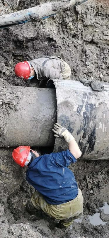 為盡快恢復(fù)供水,參與搶修人員直到下午2點才顧得上在現(xiàn)場匆忙吃一碗方便面午餐,下午4:40搶修工作順利完成,待封堵的水泥養(yǎng)護(hù)強(qiáng)度合格后于當(dāng)晚8點該管線完全恢復(fù)正常供水。