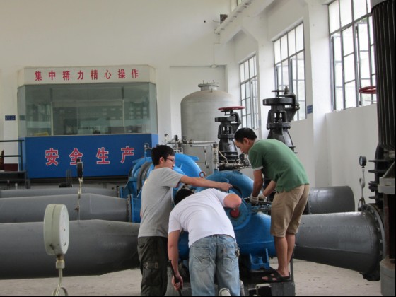 近日,氣溫逐漸攀升,為確保高峰供水時(shí)供水設(shè)備的正常運(yùn)行,市供水公司加壓站組織維修人員搶前抓早、多措并舉,加強(qiáng)對供水設(shè)施、設(shè)備的維修保養(yǎng)。圖為加壓站維修人員在維護(hù)3#送水泵。